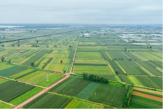 俯瞰湖北金润农业发展有限公司蔬菜种植基地,广袤田畴如绿色织锦铺展,尽显蓬勃生机。邱活摄