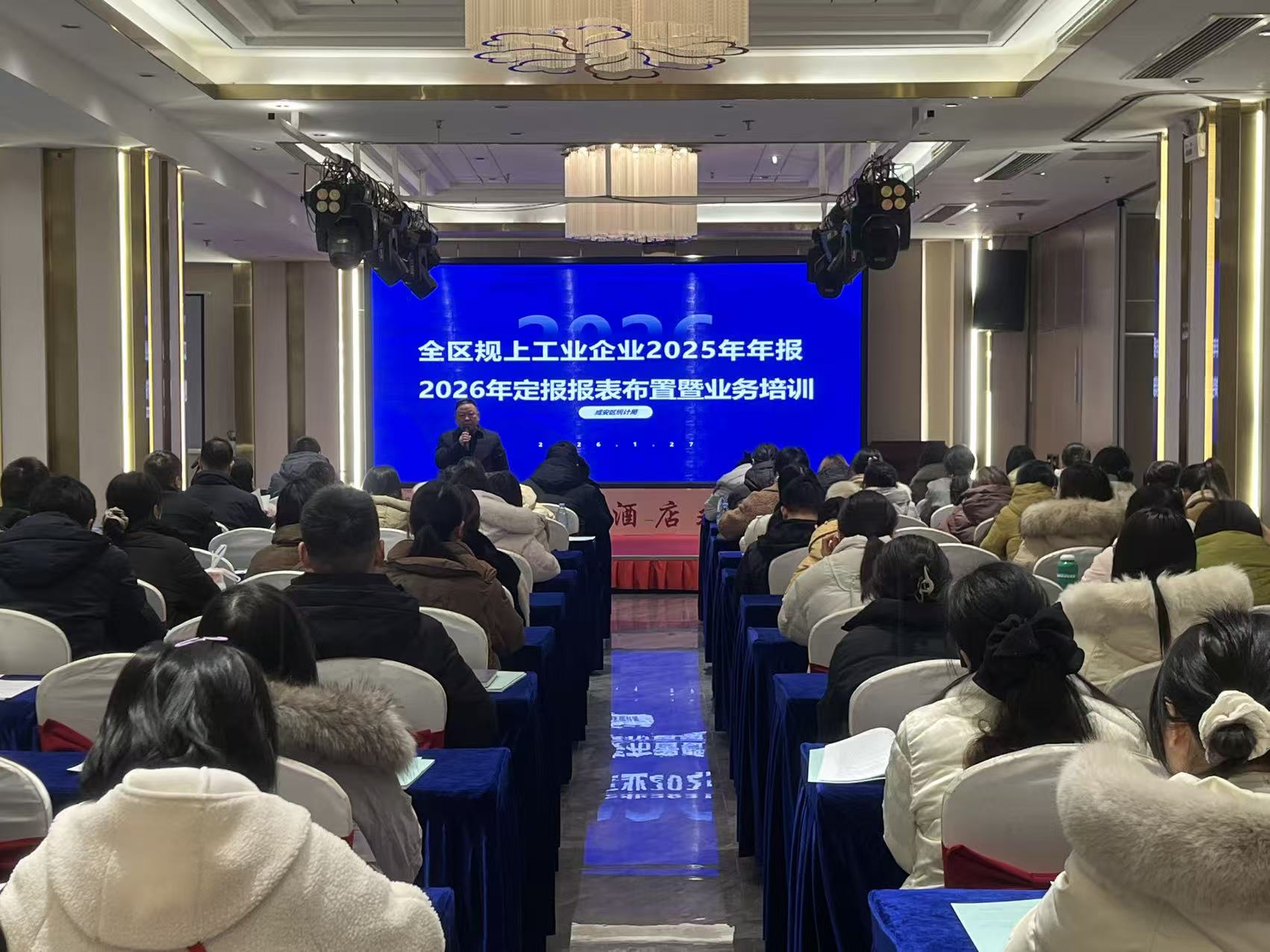 云上咸宁报道(通讯员祝昭昭 沈雨菲)为夯实统计基层基础,提升企业统计人员业务能力,保障统计源头数据真实准确,1月27日至29日,咸安区统计局召开全区“四上”企业2025年统计年报和2026年统计定报业务培训。全区规上工业、批零住餐业等重点行业“四上”企业统计员及各乡镇(街道)统计骨干共500余人参会,实现重点领域培训全覆盖。